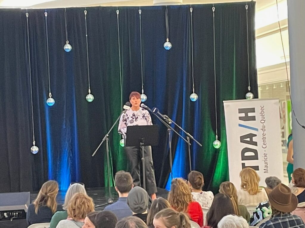 J’ai eu beaucoup de plaisir à discuter avec les gens sur place et à échanger avec les organisateurs (TDAH Mauricie Centre du Québec) des enjeux liés au TDAH. La soirée se voulait d’ailleurs l’occasion de sensibiliser le public aux réalités du trouble du déficit de l’attention avec hyperactivité (TDAH), tout en célébrant les différentes facettes de cette condition neurologique.